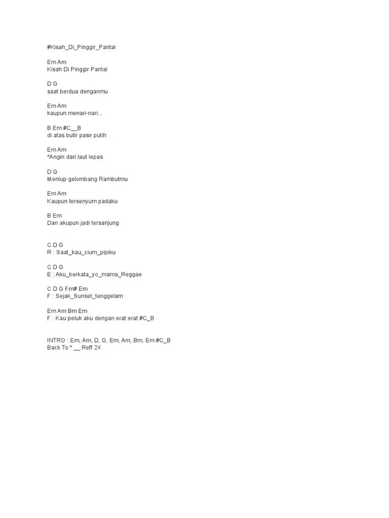 Am d dan mungkin sekarang kau bahagia disana Bm em diriku pun slalu. Am d g kau tak pernah berubah atau berpikir c d g tentang perasaanku selama ini . Lirik dan chord gitar sunset masih cinta. File_download download as pdf music_note midi. Am memimpikanmu d memimpikanmu bm em tapi sekarang kamu tlah pergi. G em mungkin sekarang kau telah melupakanku. Chord dasar kunci gitar dan lirik lagu reggae, nasional dan internasional. D g em a d . G f#m g f#m aku tau kau memang orang yang ada g f#m aku tau kau punya segalanya em a d bukan berarti. G em am d 2x g em gak usah banyak bicara am d kalau gak ada hasilnya g.